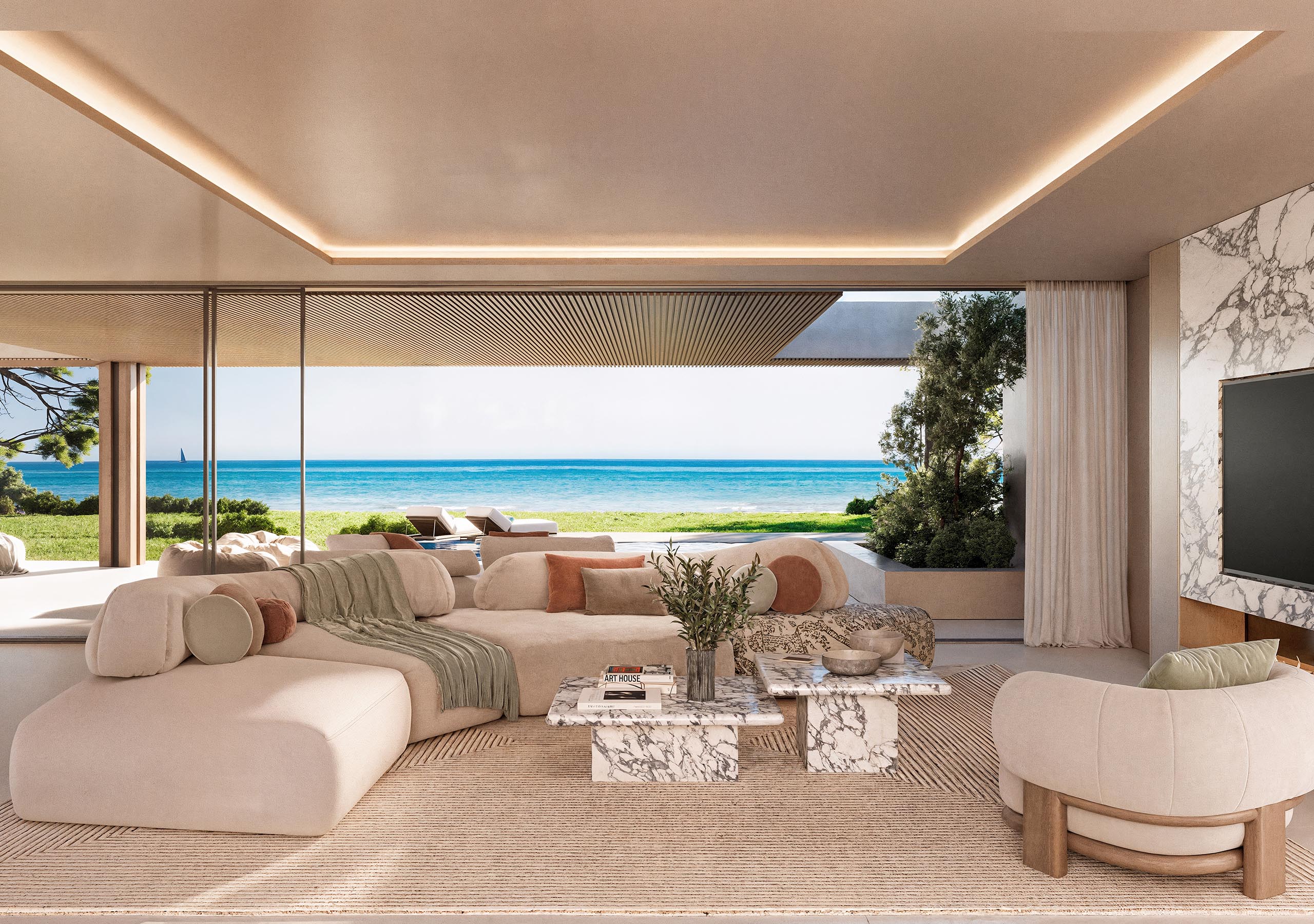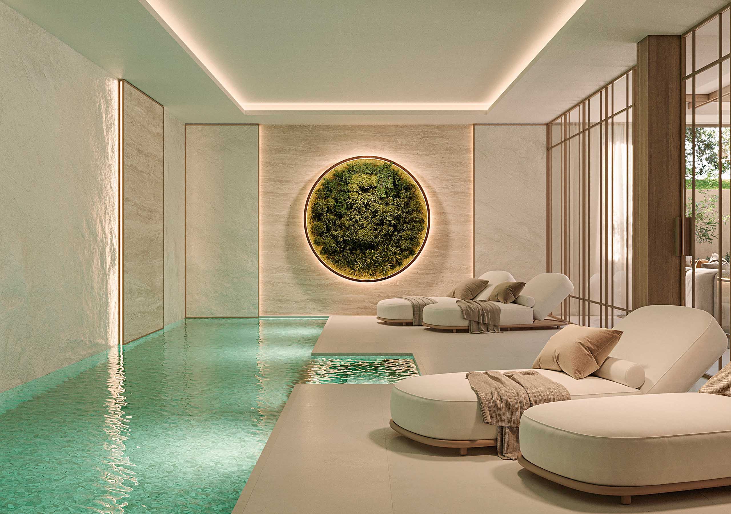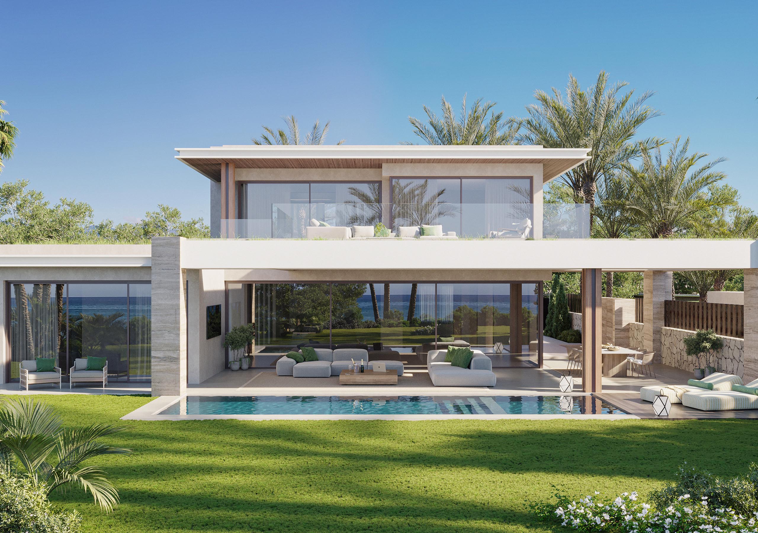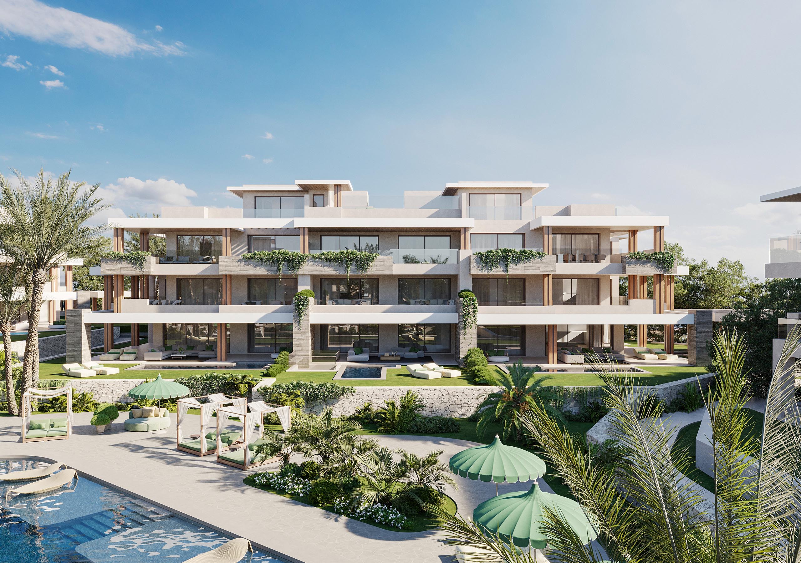 El proyecto en una parcela de 33.346 m² se despliega de forma orgánica, comenzando con seis exclusivas villas en primera línea de playa seguidas de una elegante plaza central que acoge zonas comunes como la piscina exterior, el gimnasio y el spa, rodeadas de jardines cuidadosamente diseñados.